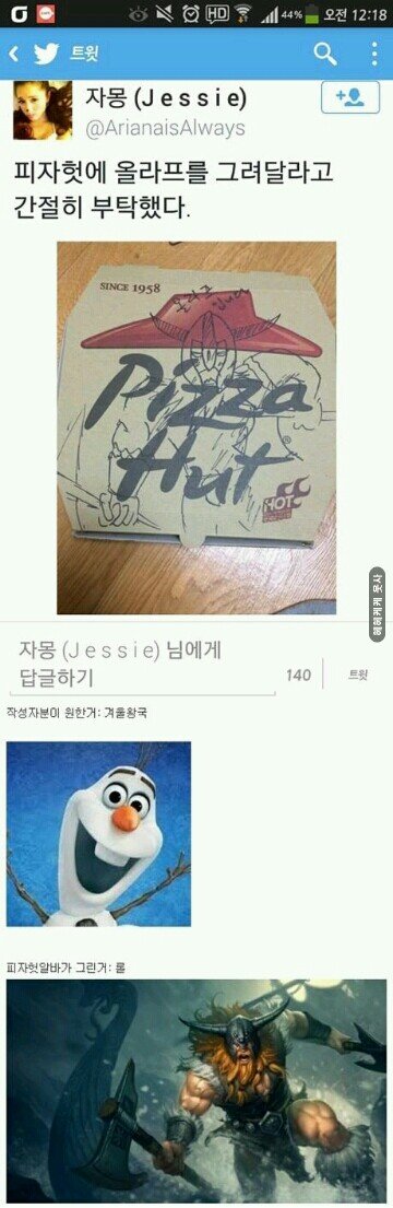 피자헛에 올라프를 그려달랬더니