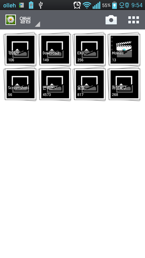 이렇게 되버린저의갤러리....오늘용량때문에 나머지 폴더 삭제하다가 분명 비디오 삭제를 했는데 이렇게 갤러리가 몽땅 날라가버렸ㅠㅠㅠ거기다가 노래도...나의 음원들 오얄끼야!!!