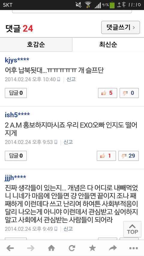타가수 까내린다고 엑소인기가 더 올라가는것도 아니고 영업은 연예인 본인이 하는건데....