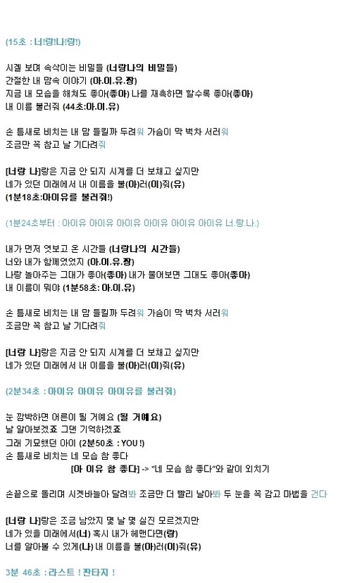 마찬가지로 아이유 노래들도 응원법에 특징이있음.