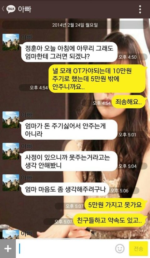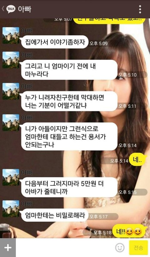 아버지 정말 멋있으신데 아들 참 철없다 돈준다고 하니 바로 웃는 꼬락서니하고는 ㅉ 나보다 못났다