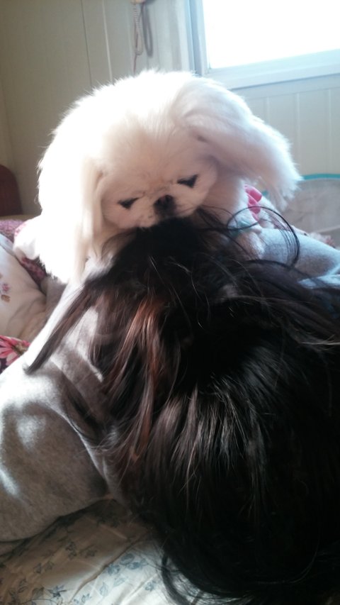 어릴때부터 글쓴이의 머리카락을 엄청좋아했음 씹고뜯고맛보고즐기고 커서도 머리카락사랑은 여전함...내머리카락 ㅠㅠㅠ