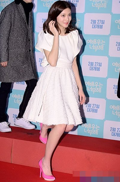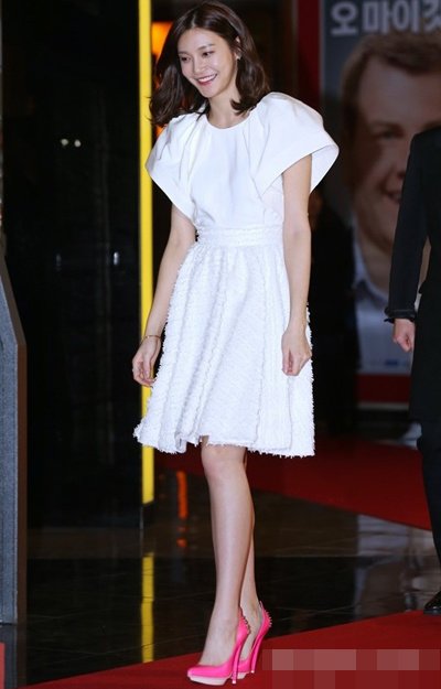 완전 로맨틱한 하얀 원피스에 핫핑크 펌프스를 매치함