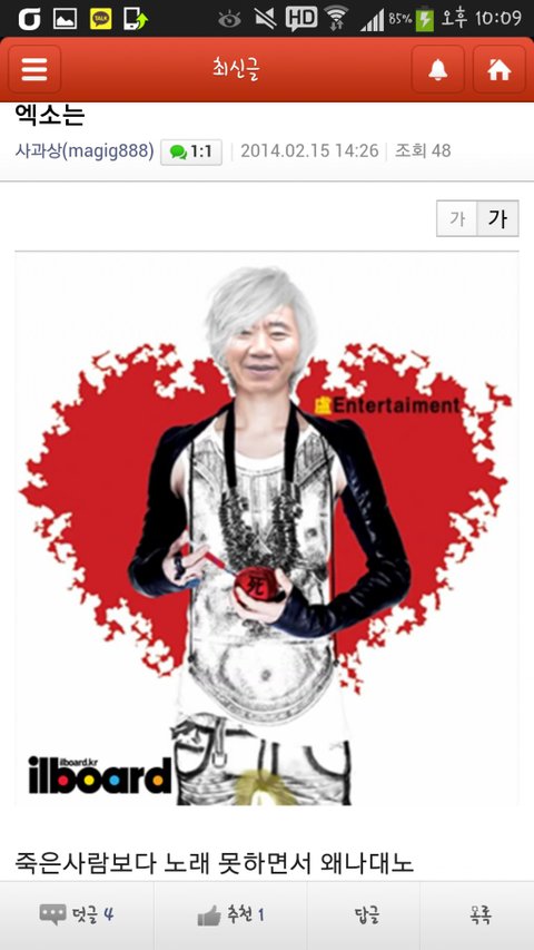 와그건좀말이심하네 엑소가지네한테피해준게뭐가있다고그딴글싸질러;조카이상한놈이네 그리고병신같은댓글에추천눌러준년놈들도 수준딱보인다 와