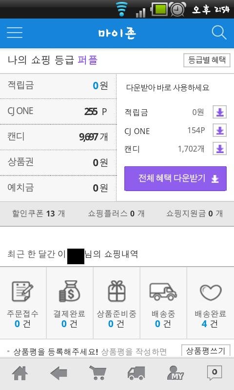 시험삼아 해봤더니 적립금/캔디(CJ몰의 포인트 이름)도 다운로드 받게 돼 있었어요. 잘못 접속된 계정의 주인에게 가긴 하지만...