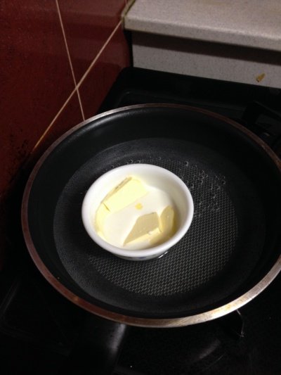 빠른 작업을 위해 우유에 버터를 넣고 중탕시켜주시면 됩니다. 너무 오래두면 지방분리 현상이 일어나기 때문에 버터가 반쯤 녹으면 꺼내어 바로 반죽에 넣어줍니다.