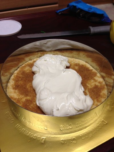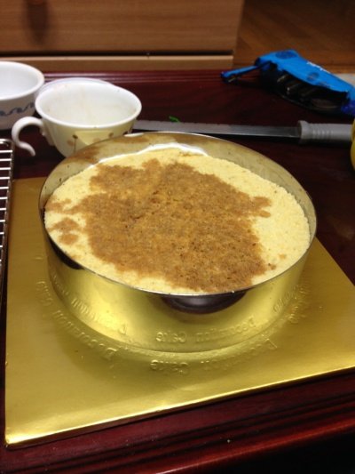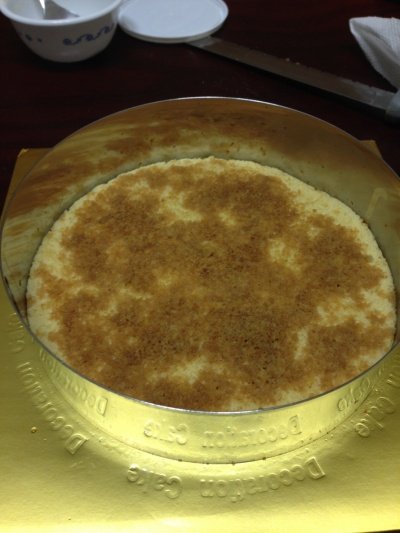 3. 바닥에 제누와즈 시트를 깔아주고 위에 커피액을 발라줍니다.(많이 많이 발라줘야하는건데 제가 만들면서 몰랐던 부분이라 그리 많이 바르지는 않았습니다.)