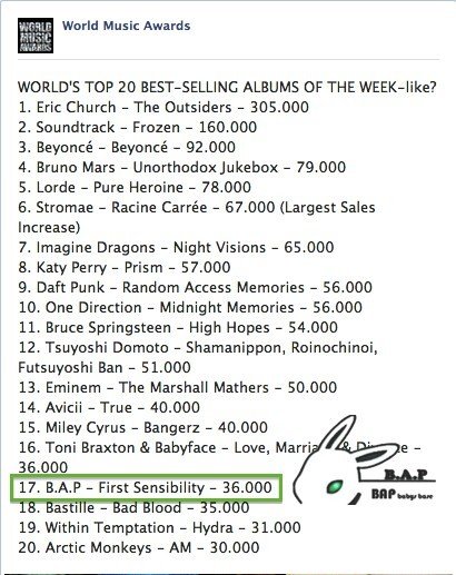 일단 비에이피는 이제 앨범만 내면 노래쟝르에 상관없이 미국 아이튠즈 힙합차트 1위 예약은 물론이고 세계적으로 차트힙씀. -이번 엔젤이 힙합이 아니었음에도 불구하고 역시 힙합차트 휩쓸음. 부심돋는다.