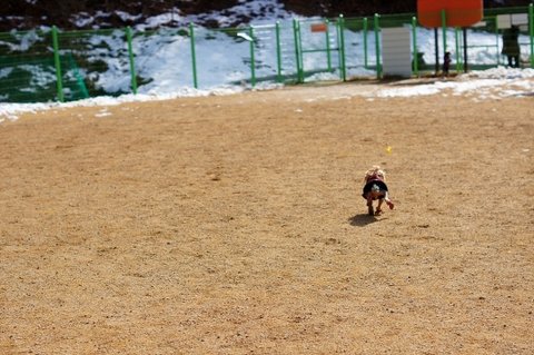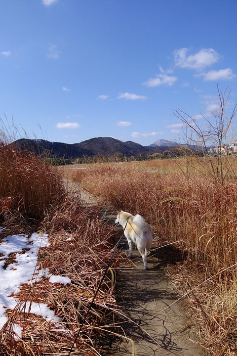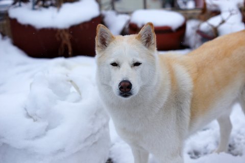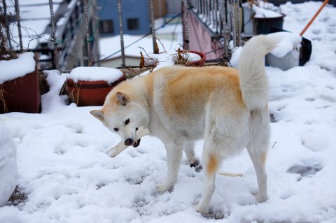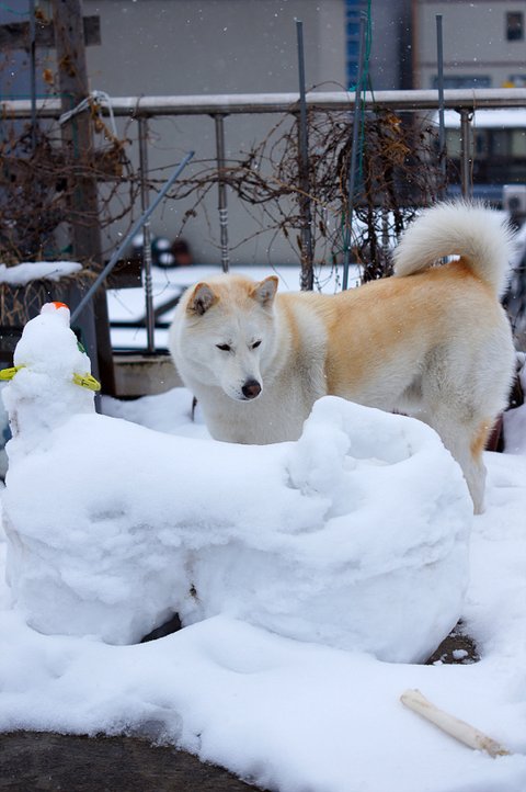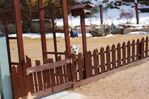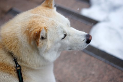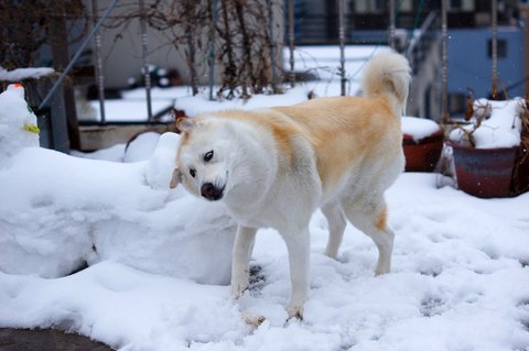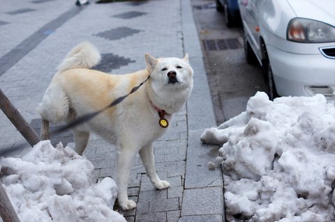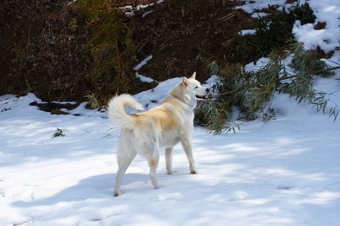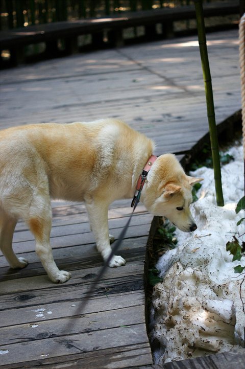 오뉴월 마당에 눈이 아직 덜 녹은 곳이 있어서 나와본 심바.