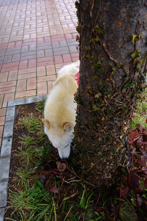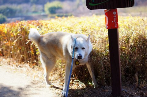 산책 나오면 항상 가로수 냄새를 유심히 맡는 심바.