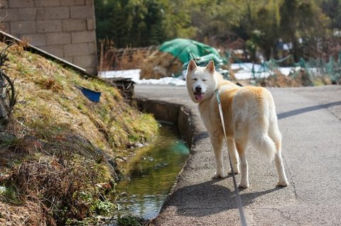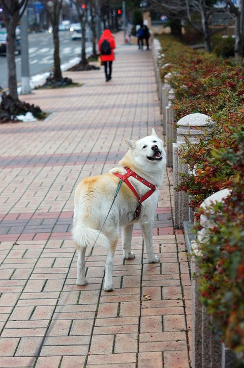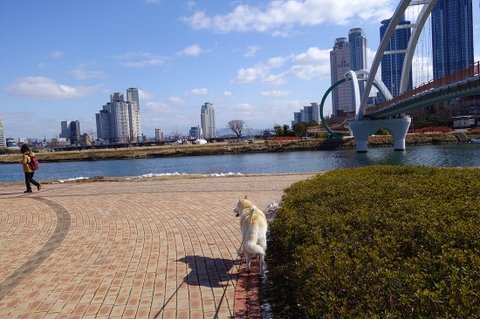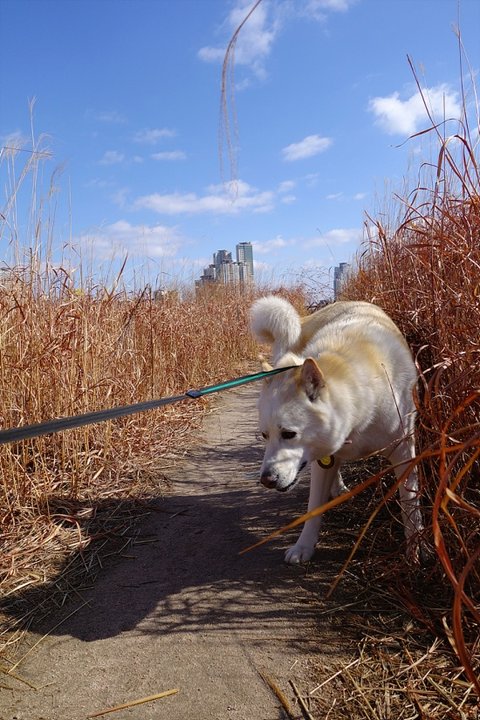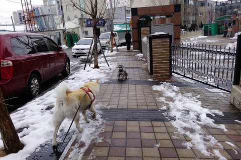 집에선 대소변을 안 봐서 하루 다섯 번의 산책을 하는 우모.