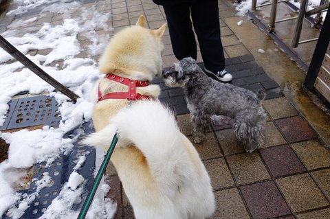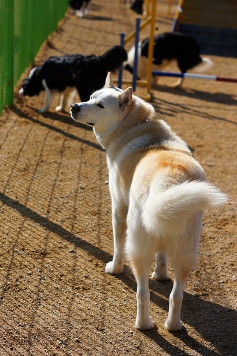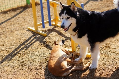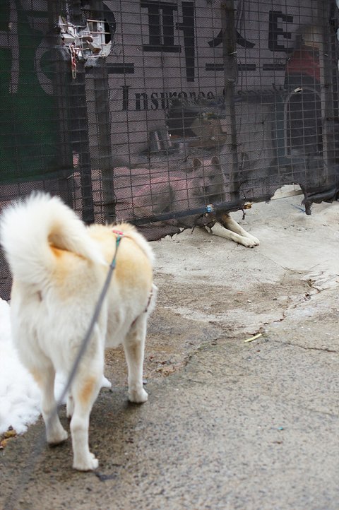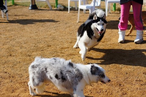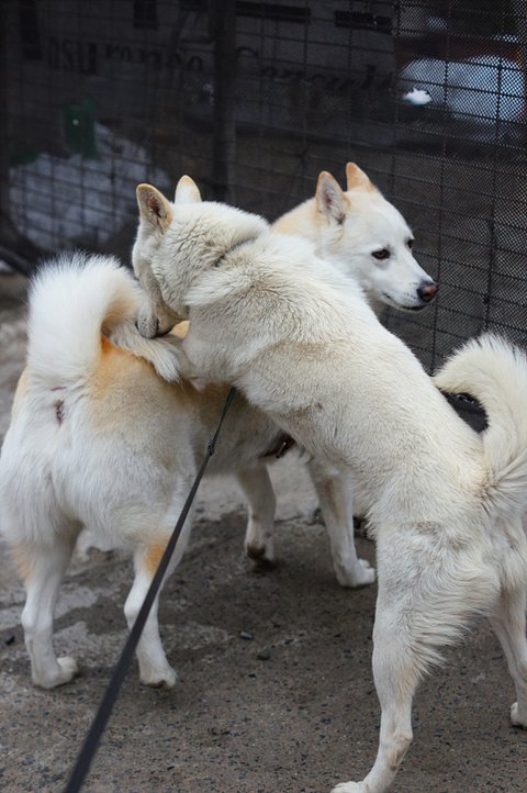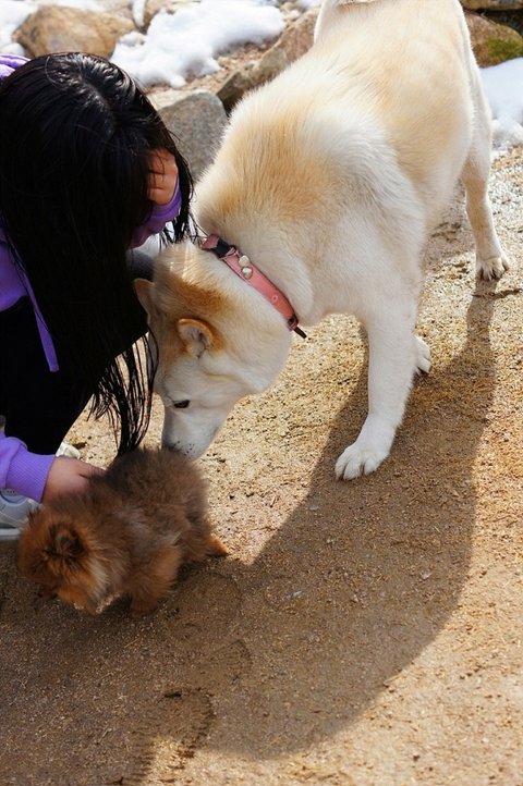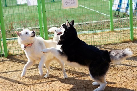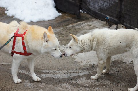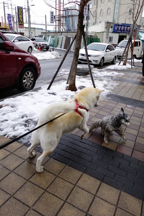 우모는 예전에 허스키와 함께 살았던 적이 있어서. 심바를 더 반겨요