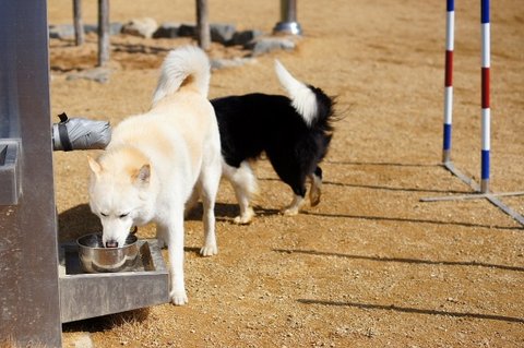 음료 옆에서 만세하고 있는 멍멍이..ㅋㅋ