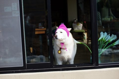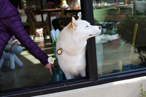 유리문 너머로 초롱초롱 눈빛공격을 하고 있는 심바