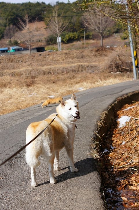 동생은 카페에 있고 저랑 심바만 시골 동네 산책을 잠시 나왔어요.