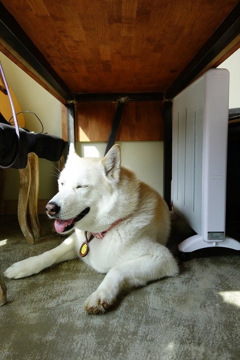심바는 잠이 와서 테이블 밑에서 쉬고 있어요.ㅎㅎ