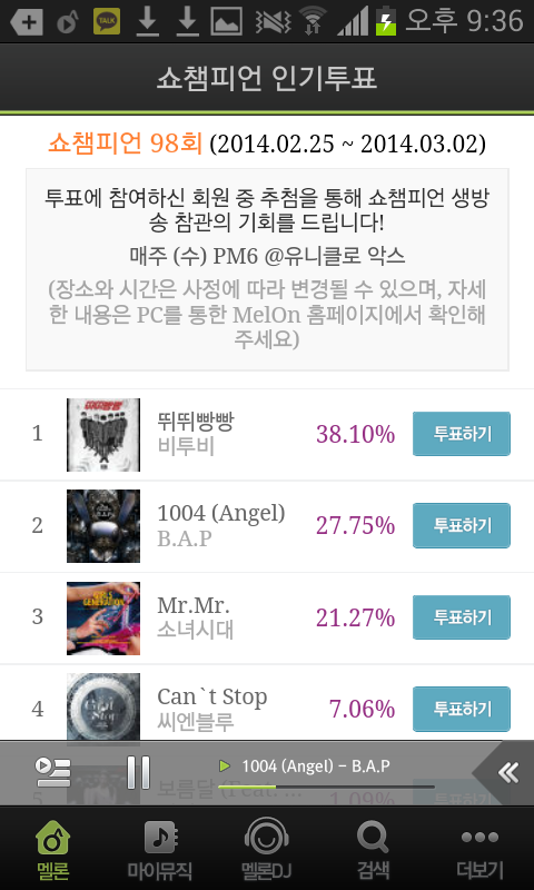 십프로 넘게차이남ㅎㅎㅋ 우리팬 절반정도되던데 대단하네 빨리투표하고와