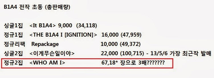 -일부 b1a4팬은 '한터차트와 오리콘 차트가 중복집계될 수 있다'고 했다