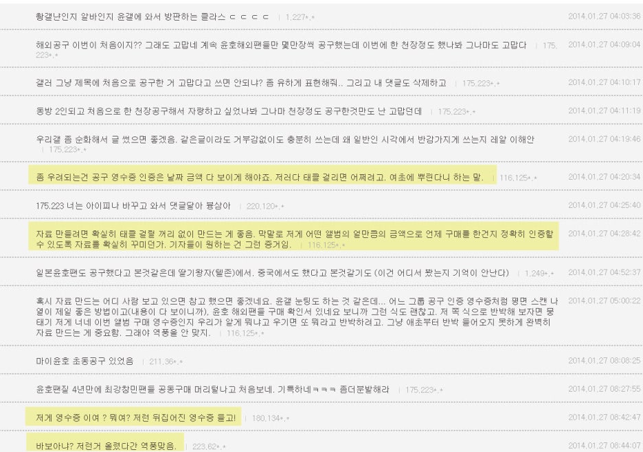 밑 댓글에 어떤 이방팬이 영수증 전체 공개하라고 해서 내가 그러면 이방팬들도 15만장 다 공개하라고 했더니