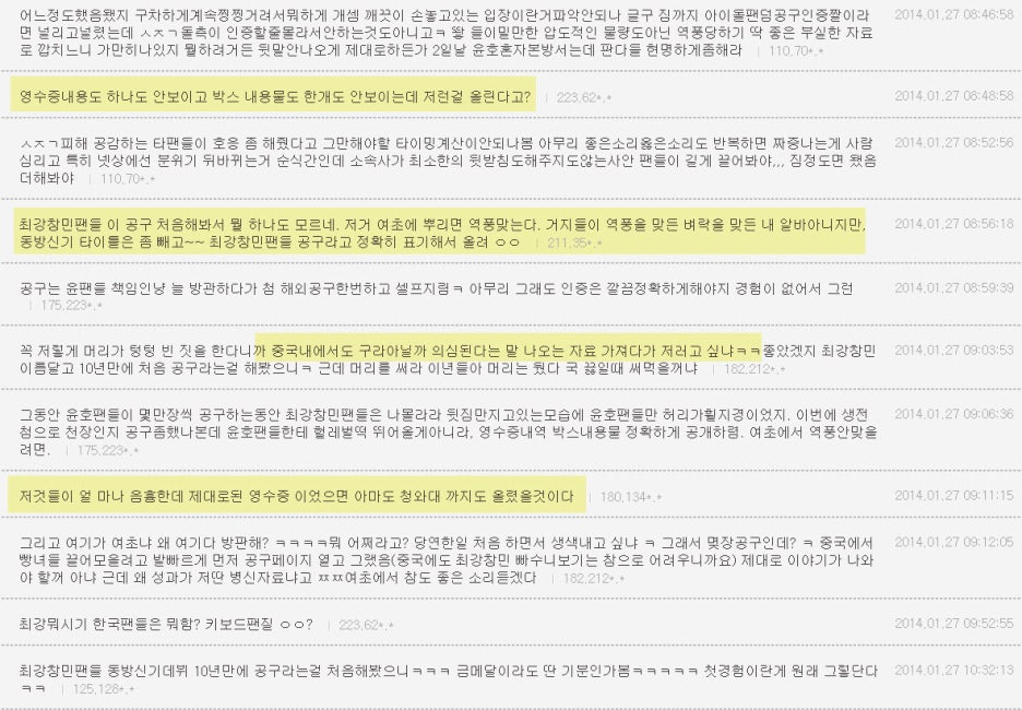 이방신기팬덤이 보여준 영수증 2천장은 그 팬덤 내부에서도 가짜가 아닐까 라고 말이 나온거라고 한다.