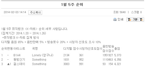 b1a4의 때문에 음방 1위를 못했다 주장하는 동방신기는 이때 apink 에 이어서 5위를 했다.