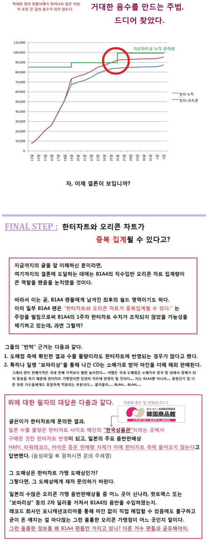 -일부 b1a4팬은 '수출물량이라도 한터챠트에 반영되는 경우가 많다'고 했다