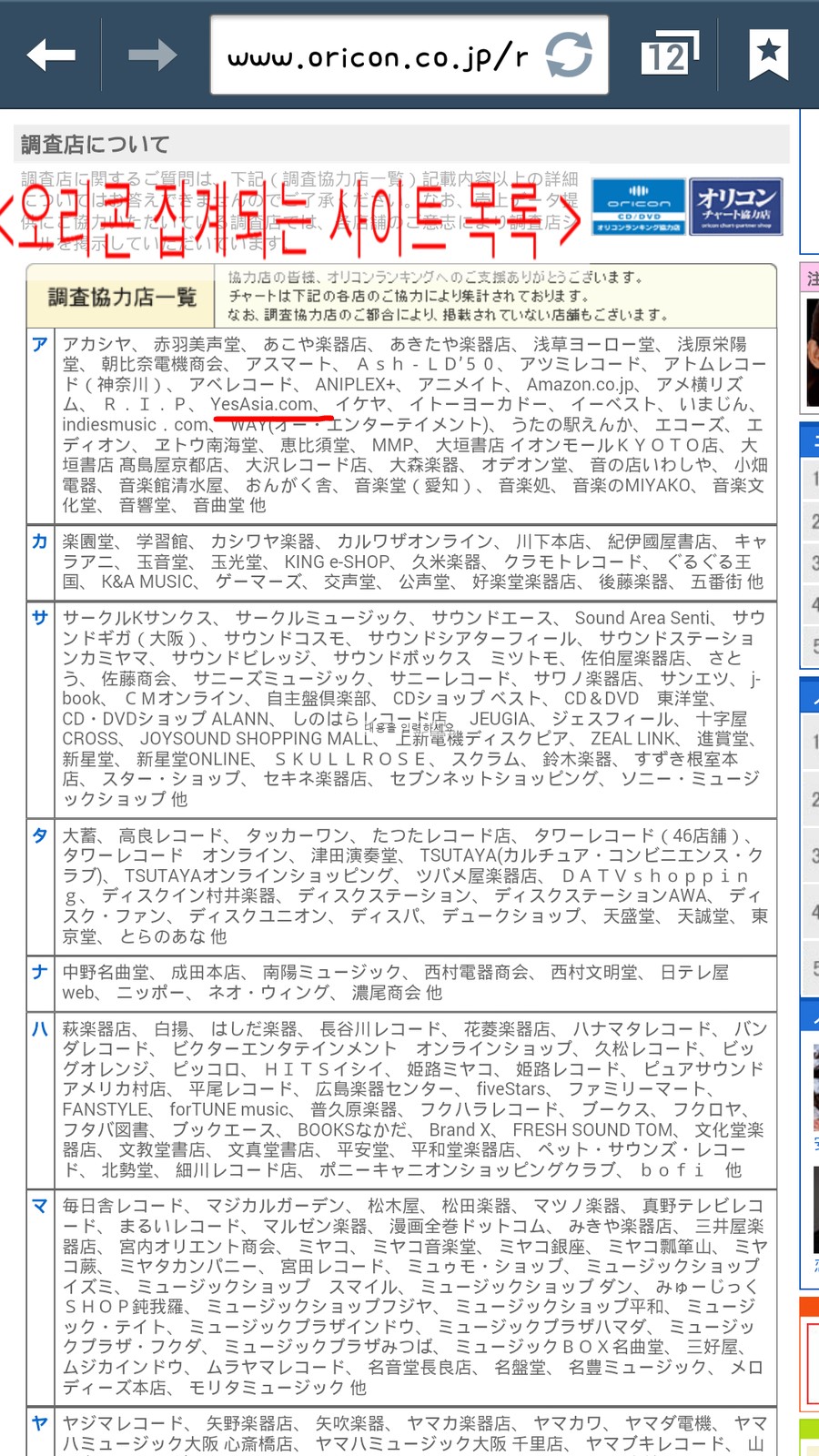 yesasia.com 은 한터도 반영되고 오리콘도 반영되는곳임