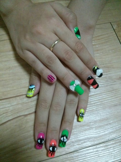 작년여름에 한건데요 이건 제가 여름이라 형광네일을 하고 팝아트같은걸 하고 싶어서 한번해봤어요!