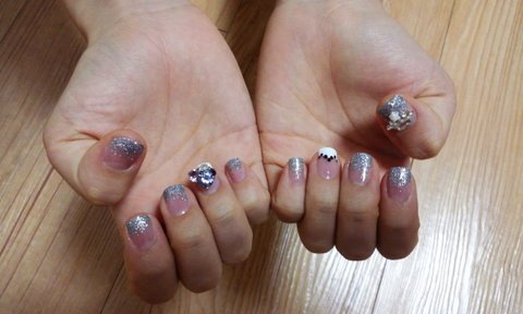 글리터 그라데이션해보고 싶어서 일반네일로 해봤어요 약지 저렇게 한거 후회중이네요...