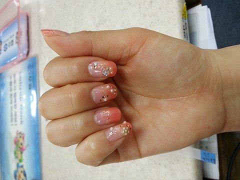 직업이 단정해야하는지라 주말용 네일로 화려한걸 해봤어요.
