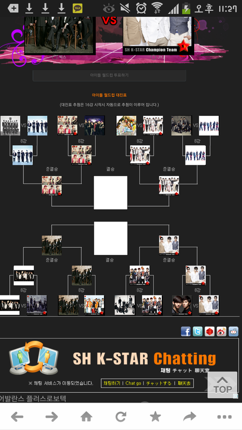 지금은 투표 끝났지만.. 언젠간 할거자나요ㅠㅠ 엑소는 16강에서 떨어짐 어떻게 이럴 수가 있는거죠? 우리 힘을 모아서 엑소 팬들의 위력을 보여주자고요!!