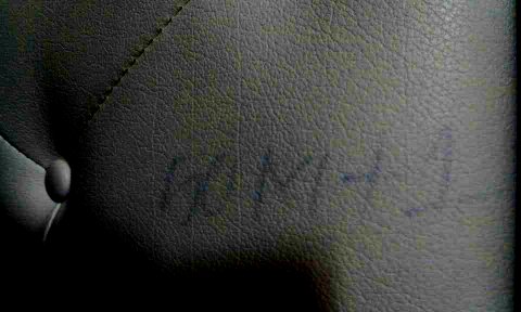 그냥 문득든생각이 가죽뒤에써놓은 가죽넘버가 아닌지... 침대만들때 썼던데 시간이 지나고 뭐 뒷쪽으로 잉크가 착색됬다던가 한거 아닐까요..ㅎ 인테리어쟁이라서 문득ㅋㅋㅋ
