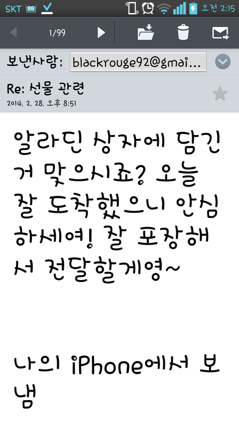 잘 도착했나 궁금해서 메일 보냈더니 친절히 답해주시는8ㅅ8