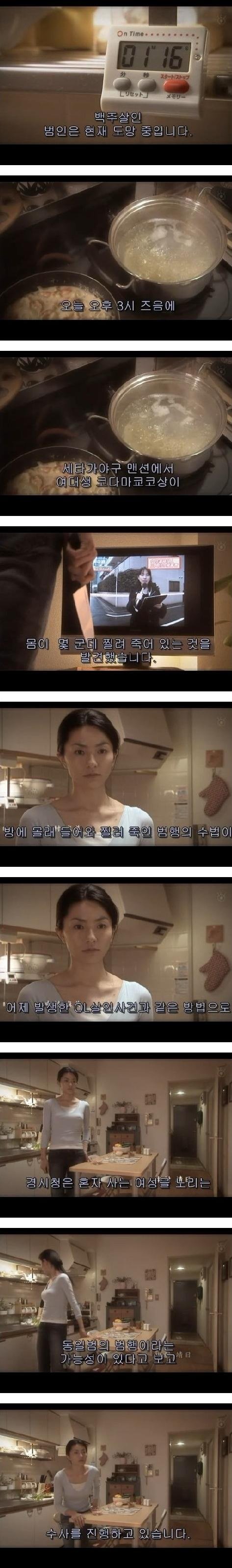 그것이 혼자사는 여자를 살해한 살인범에 관한 뉴스라 관심돋는 여주.