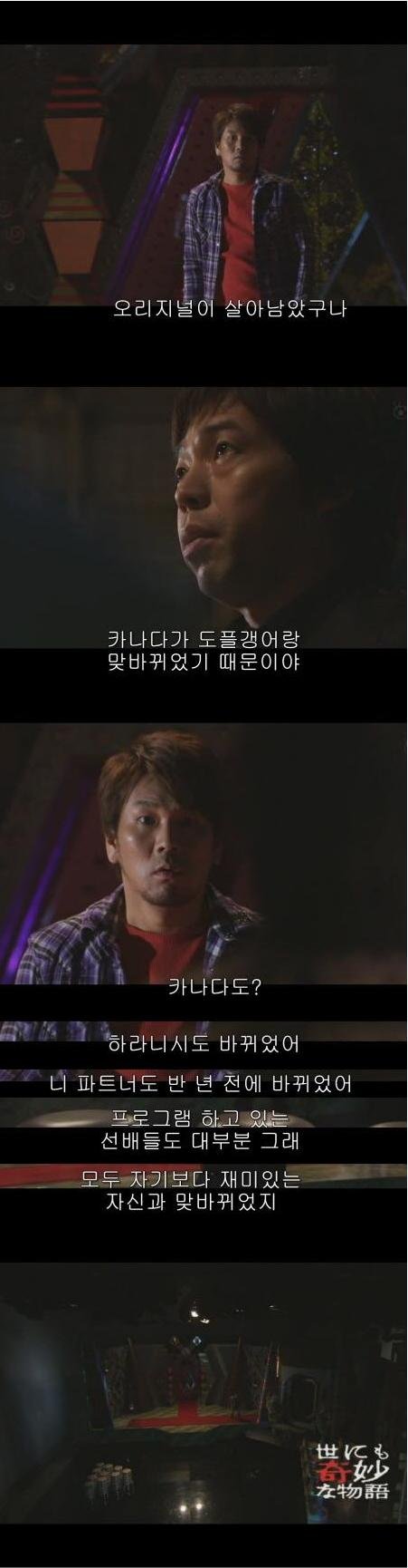 알고보니 주위에 동료는 다 도플겡어와 바꼈다는걸 알고 놀라는 남주,