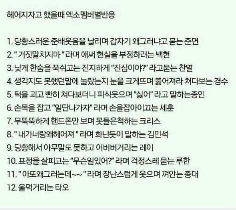 헤어지자고햇을때 멤버별반응ㅠㅠㅠㅠ