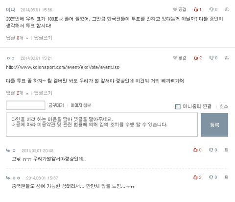 아랫분사진퍼옴 ㅋㅋㅋㅋㅋ 카이있는 레드팀에 투표하자고 누가 글올렸는데 댓글인가봐