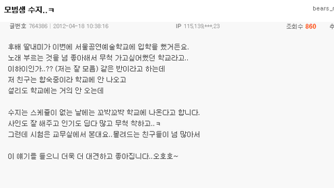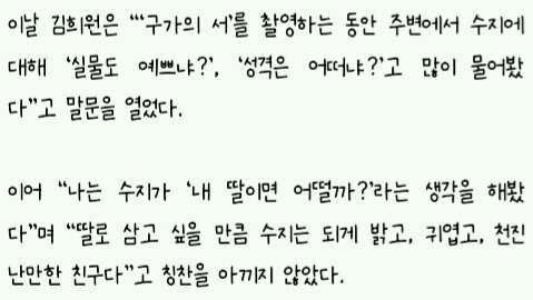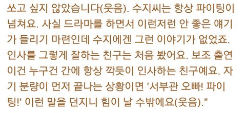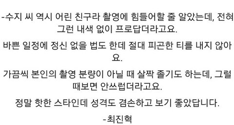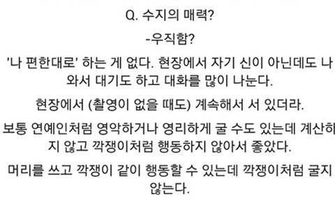 -정말 괜찮은 아이다. 보통 수지 정도의 급이 되면 도도하고 그래야 되는데 전혀 안 그렇다.