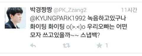 박경짱짱님이멘션보내고나서모자쓴경이의사진이올라옴