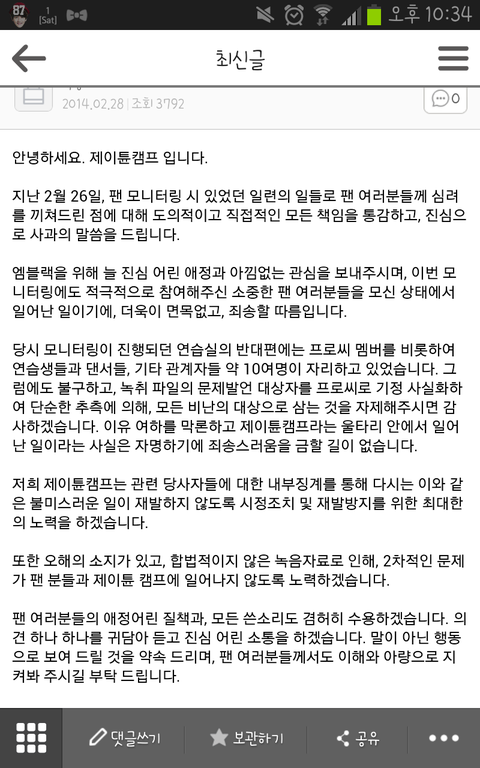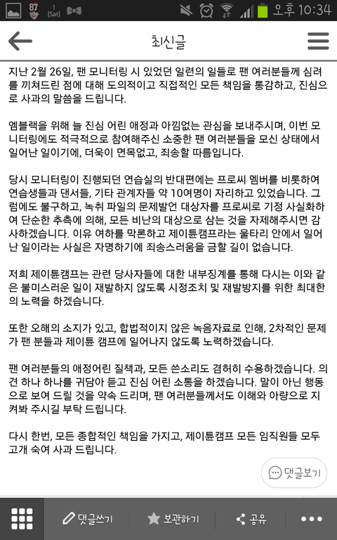 여기서 우리의 제레기는 엠블랙 공카에 사과문을 올려놓고 소리없이 사라짐