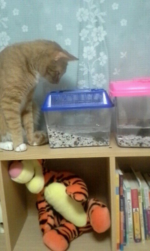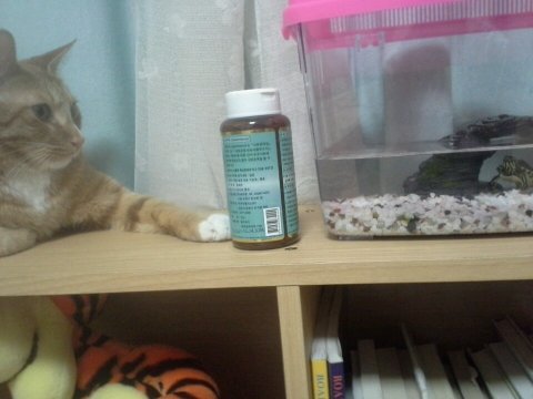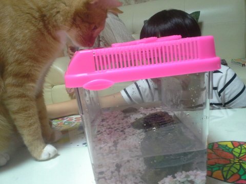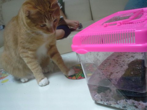 멀 찍어? 고양이랑 거북이랑 있는거 첨봄?