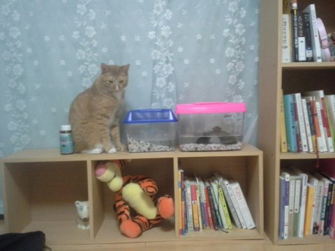 자기보다 몇백배는 더 큰 랑이가 와서 허구헌날 툭툭치고 들여다보고해서 그런지....저희집에 적응을 못해서 그랬는지... 자라가 하늘나라로 가버렸더랬죠....ㅠㅠㅠ고이고이 묻어줬어요...ㅠㅠ