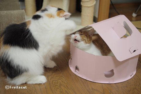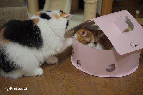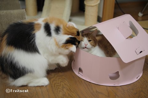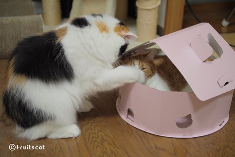 이 고양이녀석들은 종이박스를 집으로도 먹는 것으로도 인지하는게 문제입니다. 뜯어내는 건 괜찮은데 먹습니다...