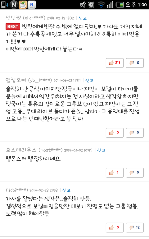 네이버에서 이번 앨범 댓글을 봤는데