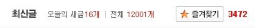 우리 좀전에 전체글 12000개 돌파하고, 즐찾도 어느새 3500을 향해가고 있어