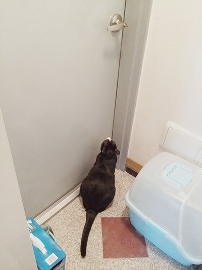 화장실 앞 발매트는 냥이들 전용 침대........ㅋㅋㅋ