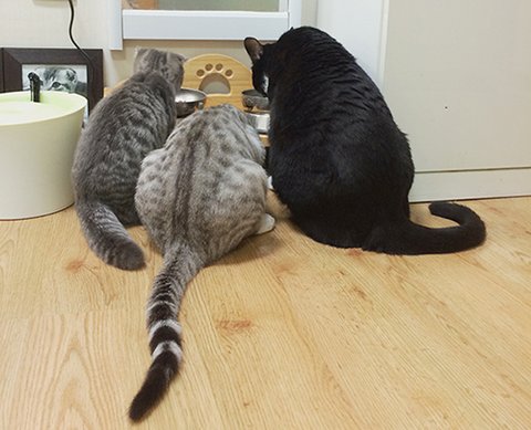 셋이 나란히 먹고 있는데