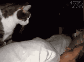 "삵근이 또 말썽피울라고 일어났써염" 이라고 약올리는 것 같네.