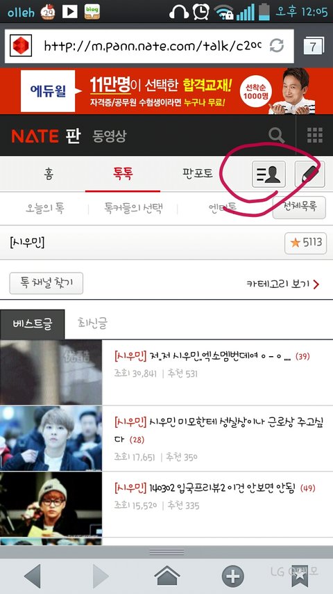 요거를 누르면 내가쓴글이 다보이잖아???