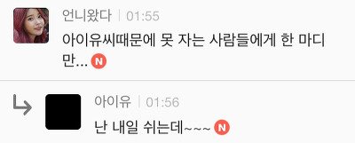 아이유가 팬 글에 댓글 써주고 간식 나눠주고 이런 것 때문에 탈출구 못찾음...신곡 스포하는것도 진짜 소속사에서 혼나도 하는거 보면 너무 귀엽고 고마움ㅠㅠ진심 아이유는 사랑♥️
